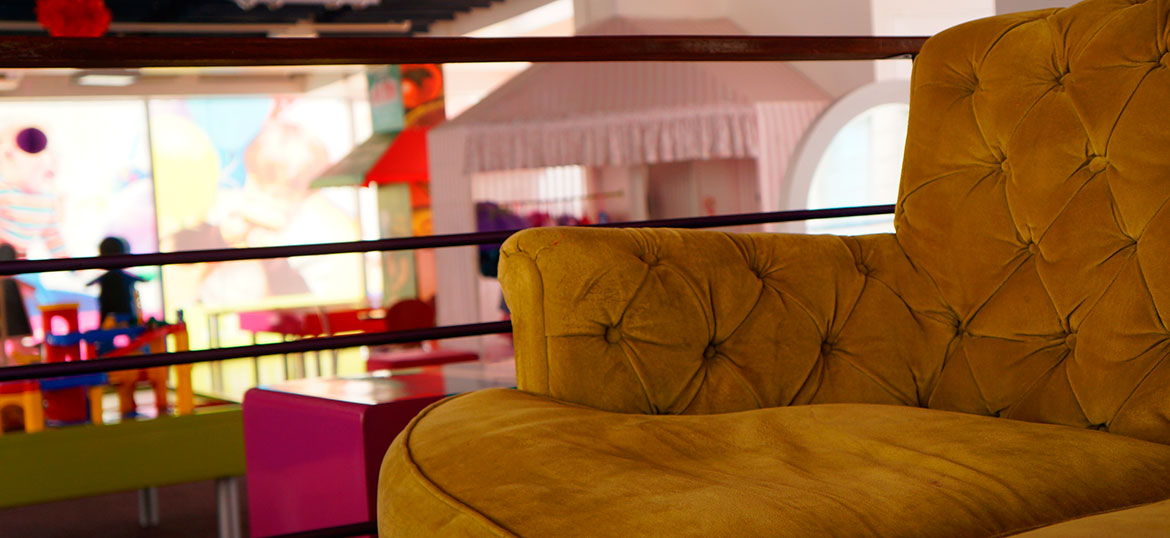Ambientes adecuados diseñados especialmente para el entretenimiento de niños y niñas desde los 6 meses a los 6 años. Además de un acogedor espacio donde los padres podrán descansar y tomar un café, mientras sus hijos se divierten.